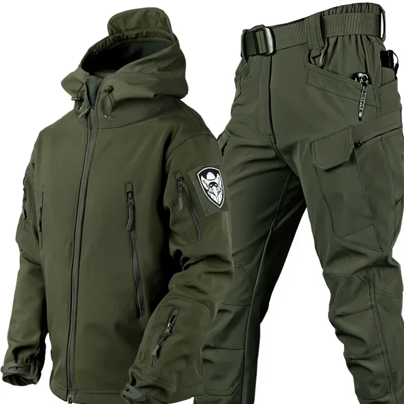 Extérieur Soft Shell Automne et Hiver En Peluche Épaissie Escalade Tactique Formation Imperméable Coupe-Vent Charge Veste et Pantalon