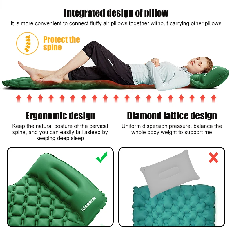 2.In order to have a better experience of the product, we will upgrade the built-in air pump of the sleeping pad. The inflatable pressure of some sleeping pads is inconsistent with the picture. Please rest assured that it will be better.
